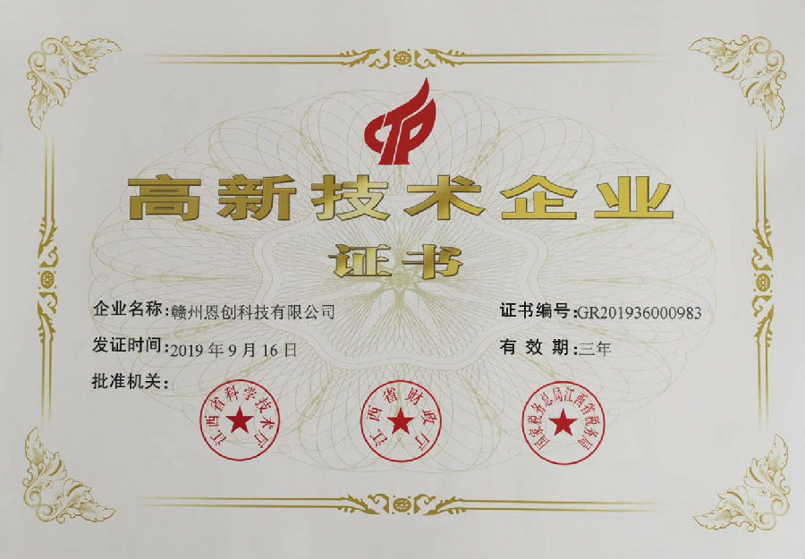 高新技术企业证书